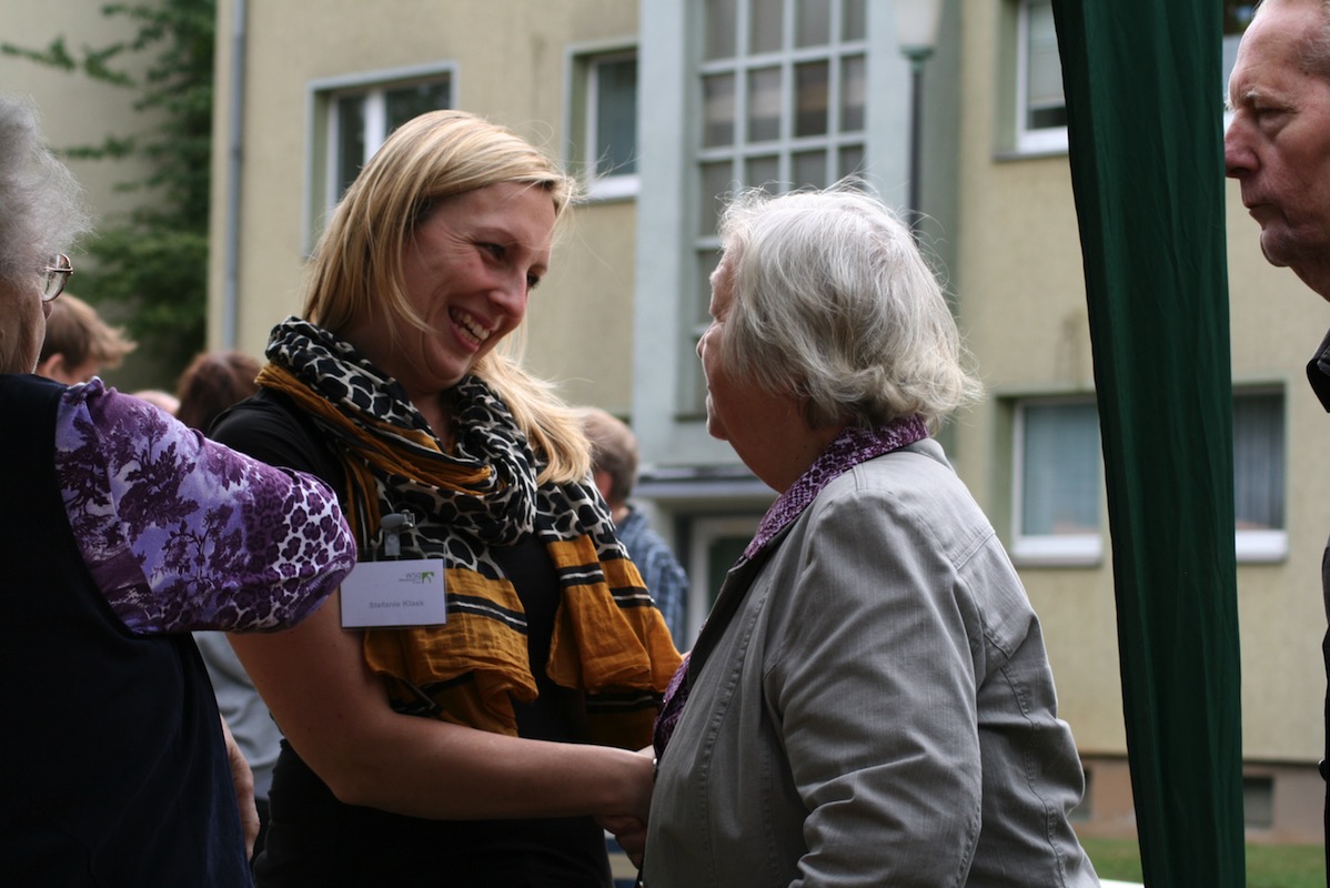 Frau Klask ist die Quartiersmanagerin und die gute Seele, die für den guten Ton im Klanggarten sorgt. Sie kümmert sich um alle Sach- und Herzensanliegen der Mieter - natürlich auch um die von Frau Franziska Fischer, die sehr glücklich über ihre barrierefreie Wohnung ist und täglich den Blick auf die Kindertagesstätte genießt.