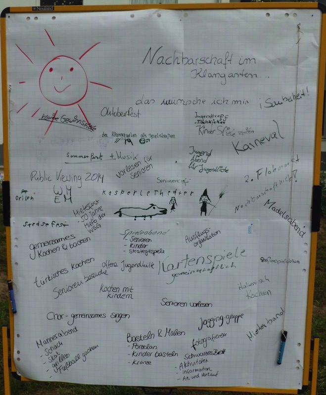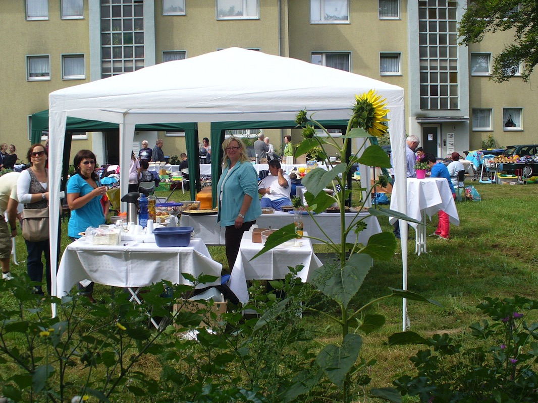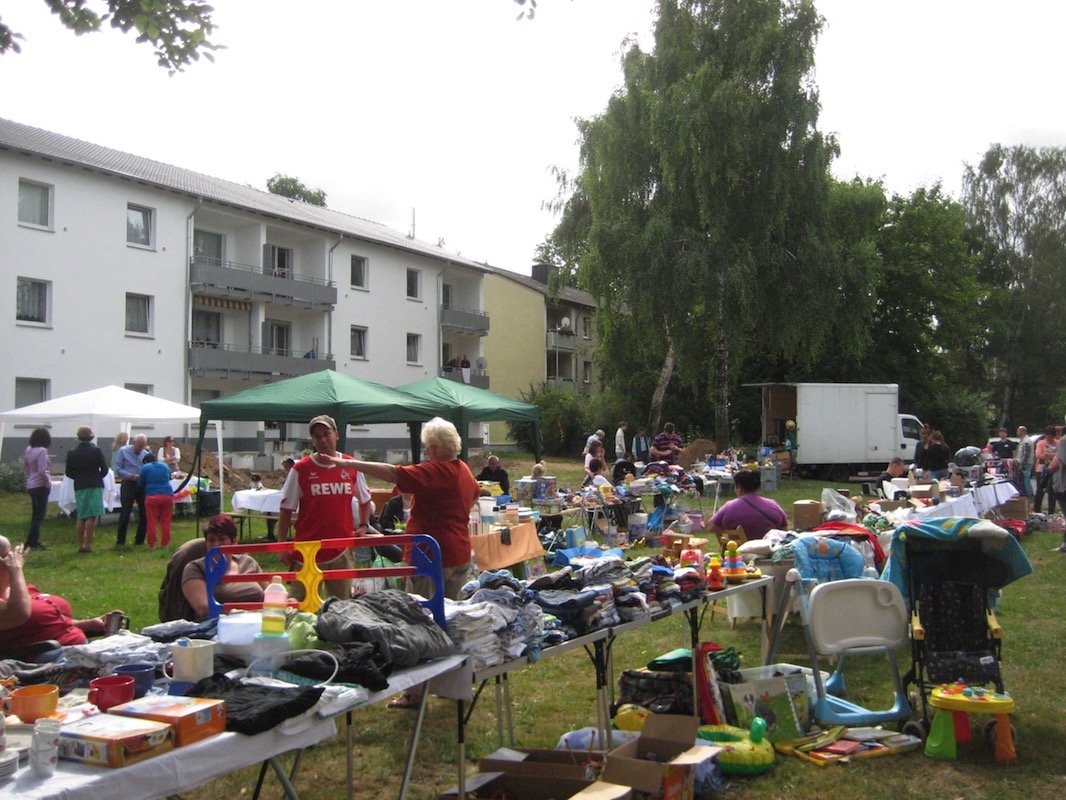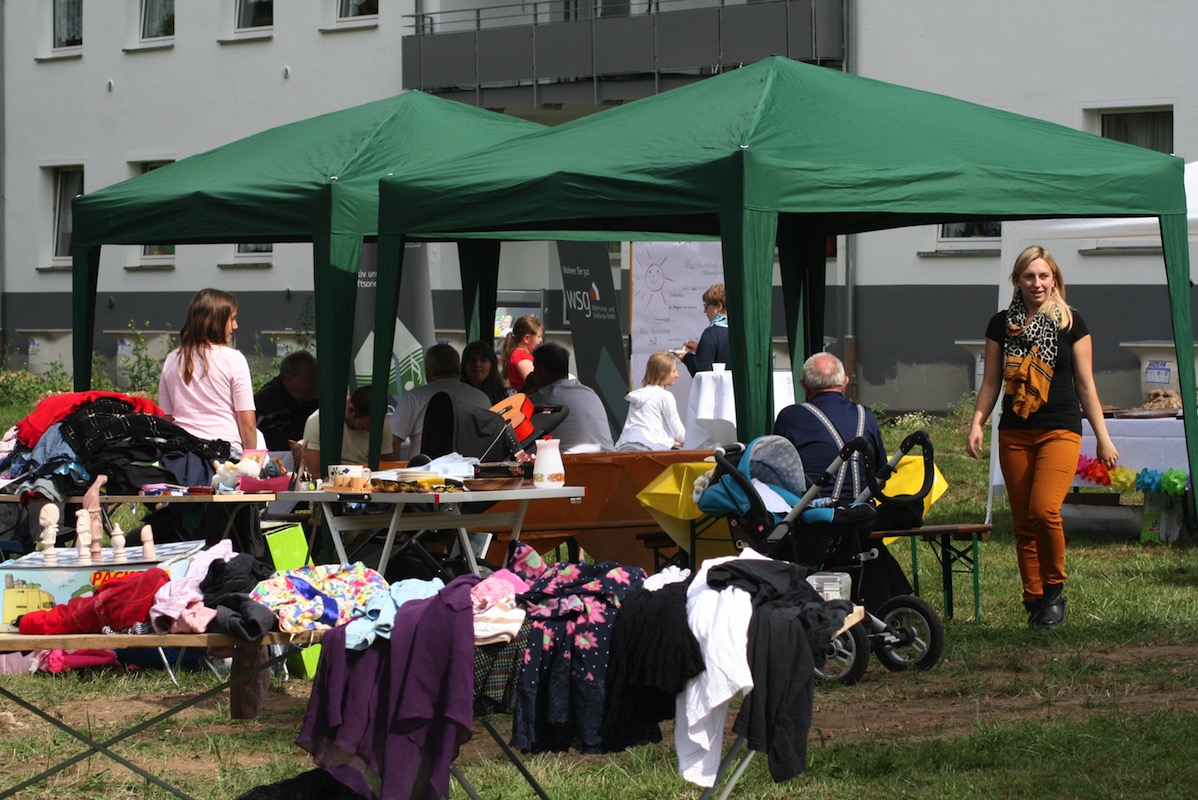 Am 1.9.2013 eröffnete erstmals der Klanggarten-Flohmarkt. Dank des Einsatzes vieler hilfsbereiter Mieter wurde aus dem Flohmarkt ein kleines, fröhliches Nachbarschaftsfest, bei dem die Mieter auch Wünsche zu Angeboten im Klanggarten äußern konnten. Mit viel Vorfreude erwarten alle schon den Termin für den nächsten Klangarten-Flohmarkt.