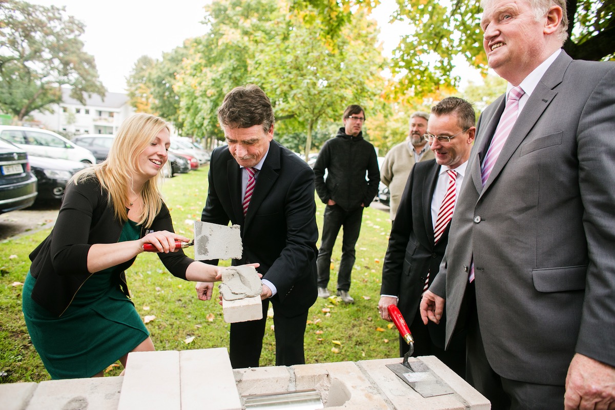Mit viel Stolz und einer großen Portion Vorfreude wurde am 11.10.2013 der Grundstein für das Haus Beethovenstr. 5 gelegt. Dabei waren nicht nur die Vertreter der WSG, der Stadt Köln und der Bauunternehmen, sondern vor allem viele glückliche Mieter, die sich auf ihre neuen Wohnungen freuen konnten.